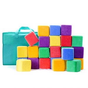 There are 24 blocks of different colors included in the set. All of them are kept nicely in a soft carry case. But kids can use them to learn counting, colors or to simply play at home.